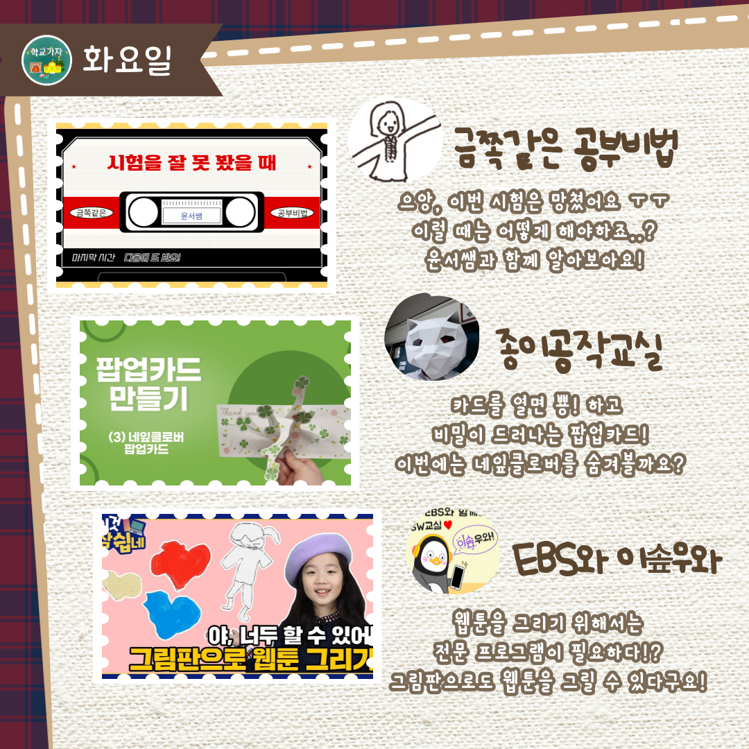그리고 학교가자닷컴 선생님들과 함께하는 직업 탐방 라이브도 준비되어 있답니다.