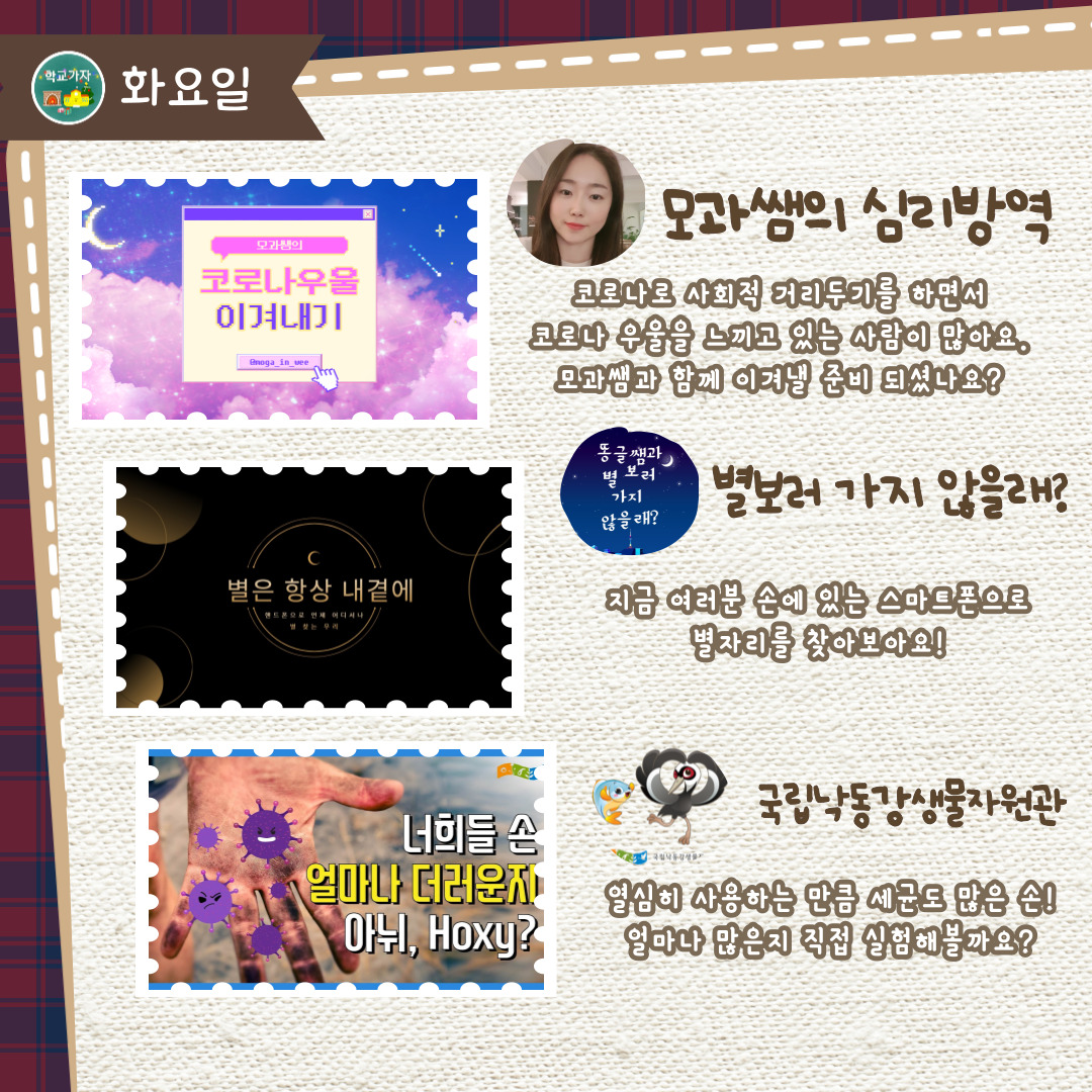 3주(1.10~1.14)는 "위드코로나로 활기찬 겨울방학생활!"을 주제로 콘텐츠를 준비했어요.