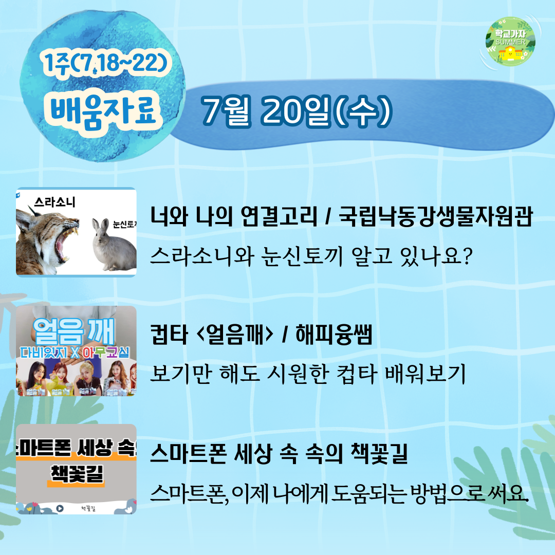 초등학생을 위한 학교가자 온라인 여름캠프가 드디어 시작되었습니다!