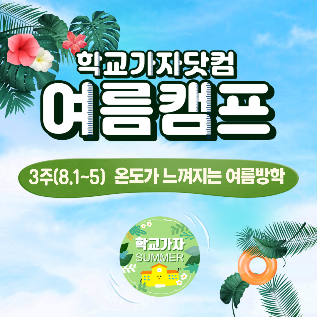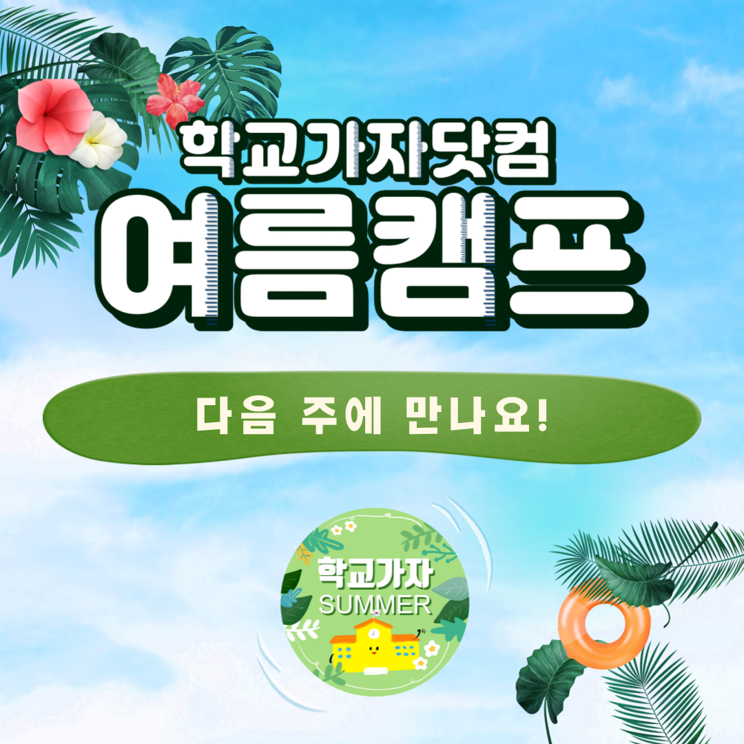 | 다시 돌아왔다! 학교가자닷컴 온라인 여름캠프(초등) (0) | 2022.07.01 |