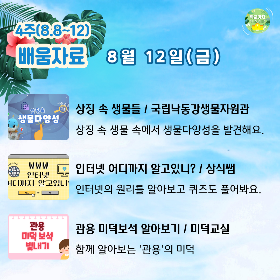 | 2022 초등 학교가자 온라인 여름캠프 3주 [온도가 느껴지는 여름방학] (0) | 2022.07.31 |