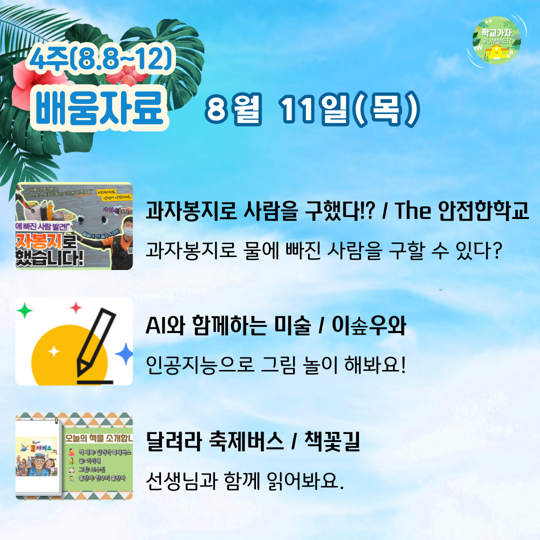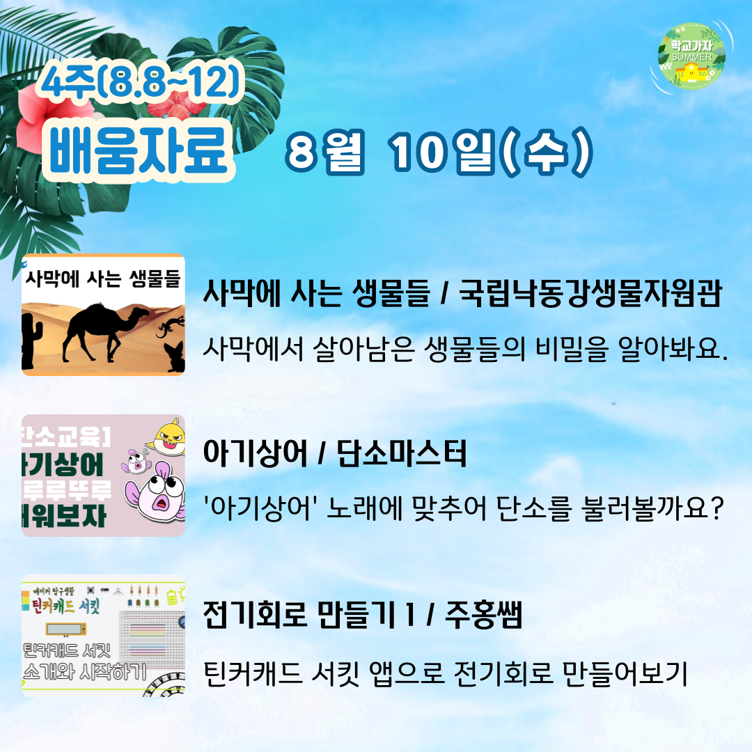 올해도 다시 돌아온 학교가자닷컴 여름캠프를 소개합니다! 2022년 7월 18일(월)부터 8월 27일(금)까지 6주간 실시되는 이번 여름캠프는 지난해 실시된 여름캠프 미션을 다듬고 매일 배움자료를 보