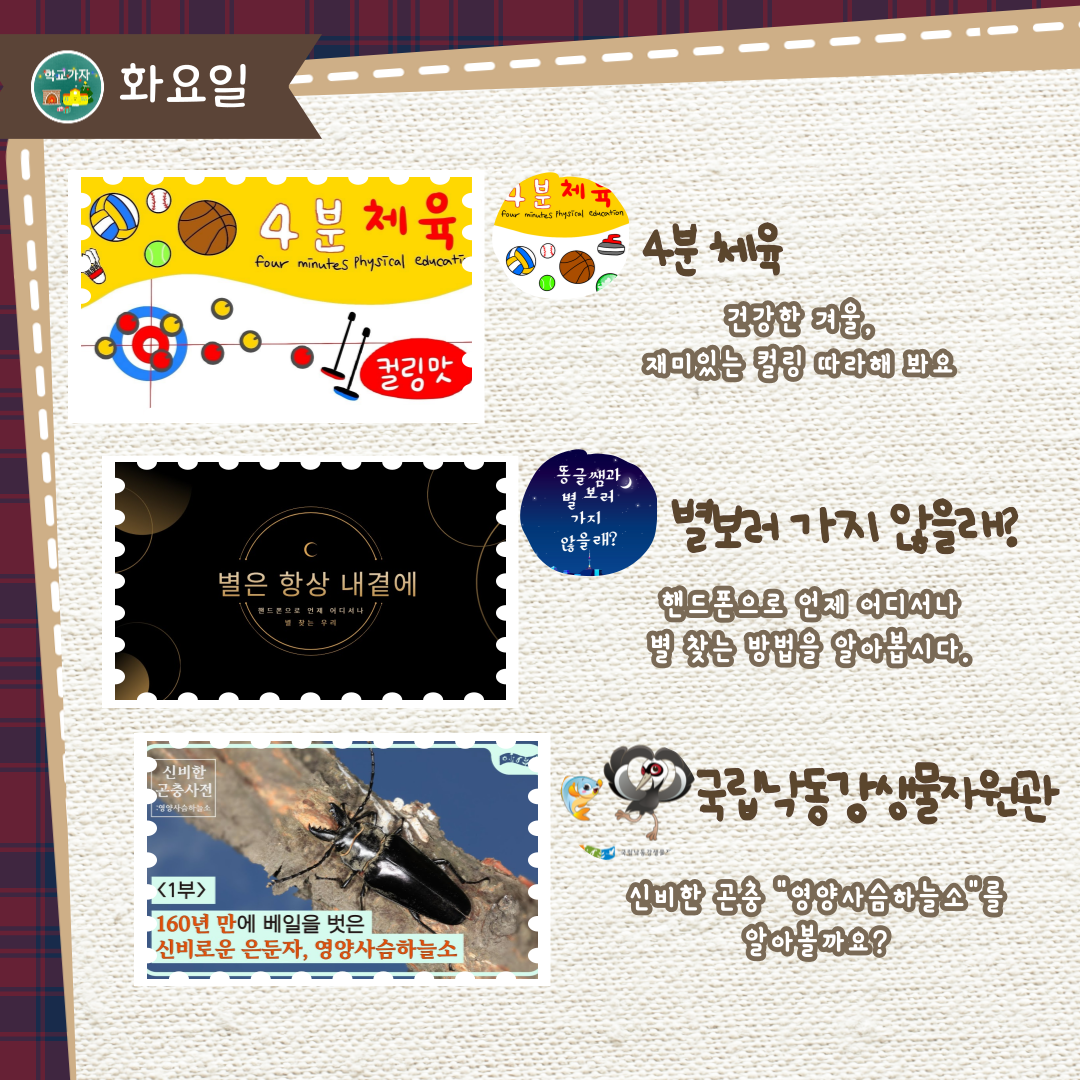 2주(12.26~12.30)는 "춥지만 활기찬 겨울방학 생활"을 주제로 준비하였습니다.