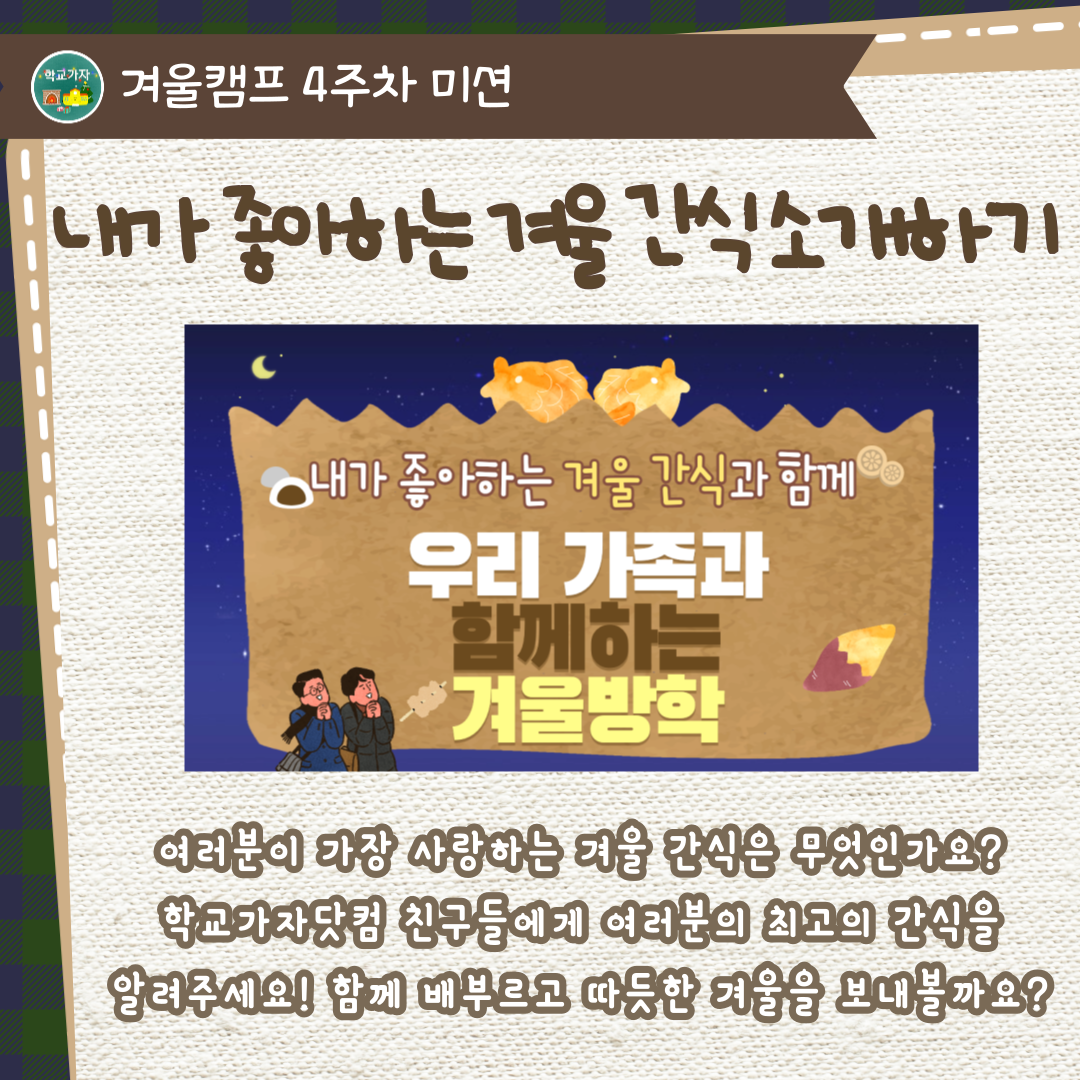4주(1.9~1.13)은 "우리 가족과 함께하는 겨울방학"을 주제로 준비하였습니다.