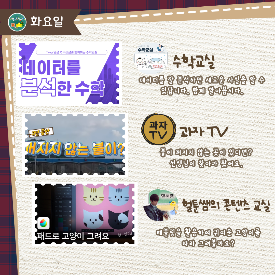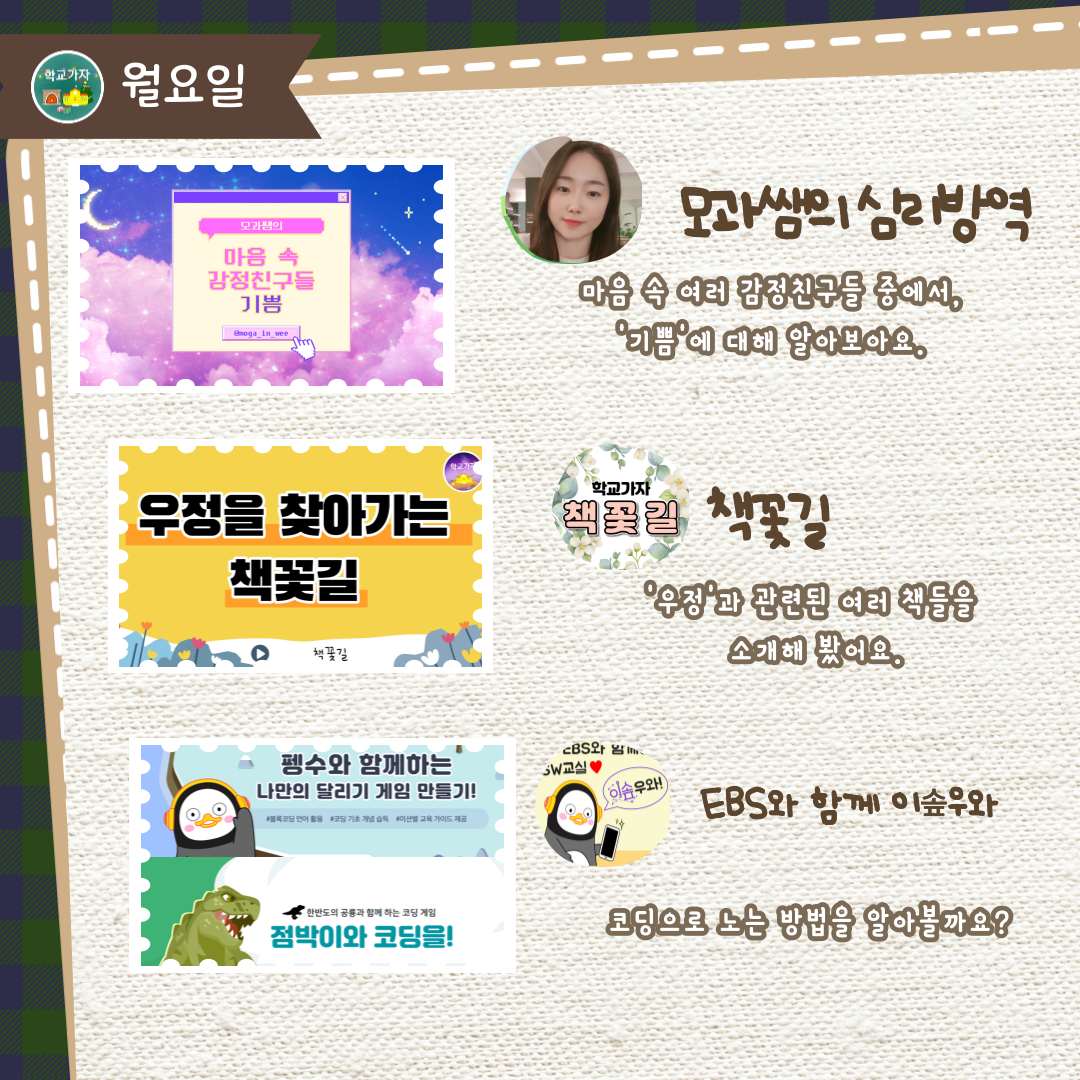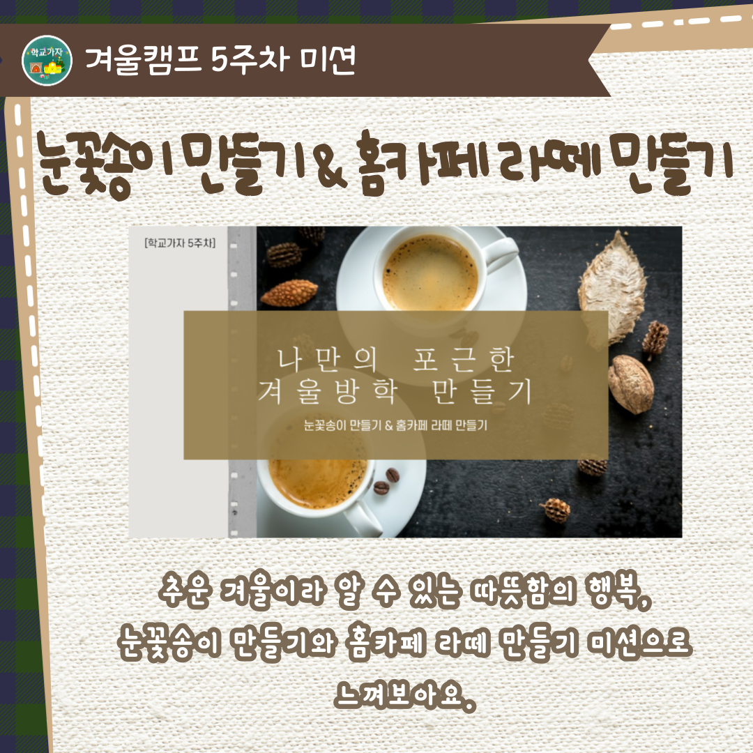5주(1.16~20)는 "나만의 포근한 겨울방학"을 주제로 준비하였습니다.