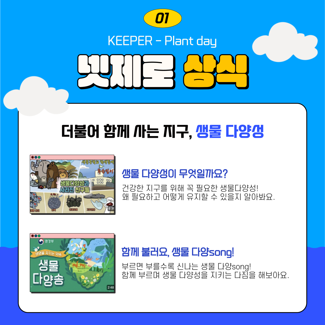4주(8.14~18)는 "[Plant Day] 더불어 함께 사는 지구, 생물 다양성"를 주제로 준비하였습니다.