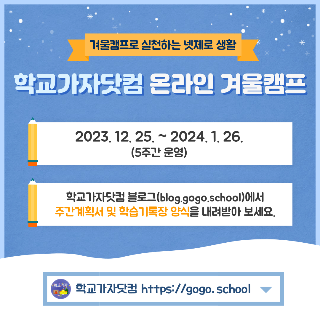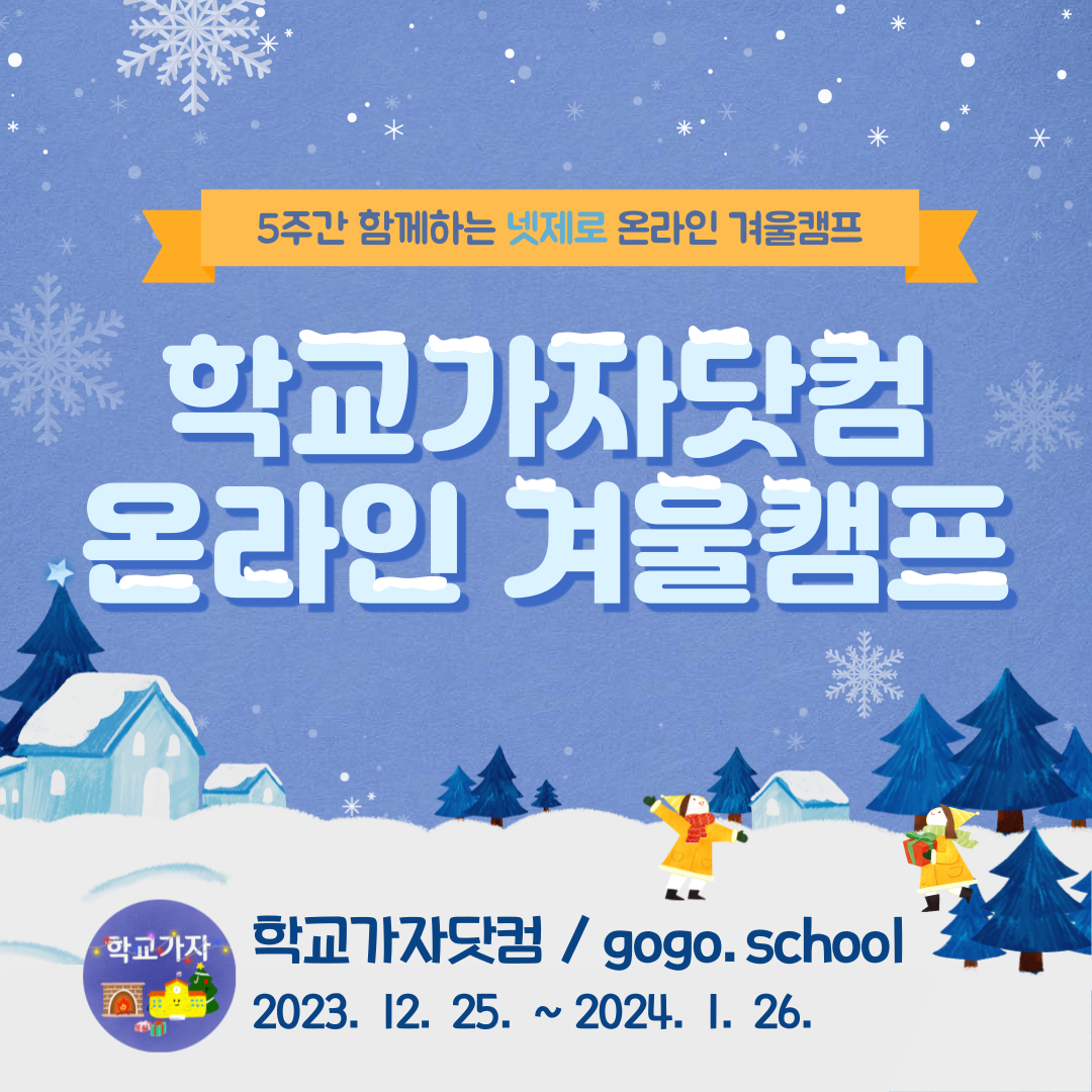 지난 여름에 이어 이번 겨울방학에도 학교가자닷컴과 함께하는 온라인 겨울캠프를 준비하였는데요,