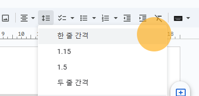 도구 모음에 있는 '줄 및 단락 간격' 을 누릅니다.