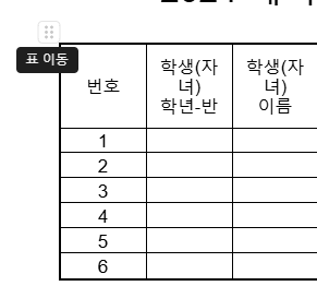 표의 왼쪽 위에 마우스를 대면 점 6개의 아이콘이 생깁니다.