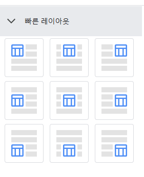 '빠른 레이아웃'에서는 해당 쪽에서의 위치를 설정할 수 있습니다.