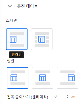 '스타일'에서 왼쪽은 '인라인'입니다. 기본적으로 글과 함께 움직입니다.