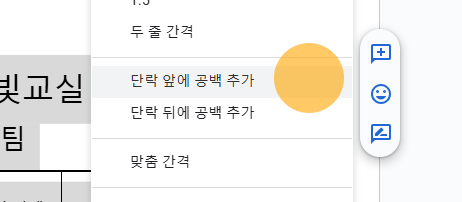 '단락 앞에 공백 추가'를 누릅니다. 다시 '줄 및 단락 간격'에서 '단락 앞에 공백 삭제'를 눌러 삭제된 상태로 만듭니다.