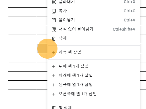 이후 행이나 열을 더 늘리고 싶다면 원하는 칸을 클릭하고 오른쪽 버튼을 누릅니다.