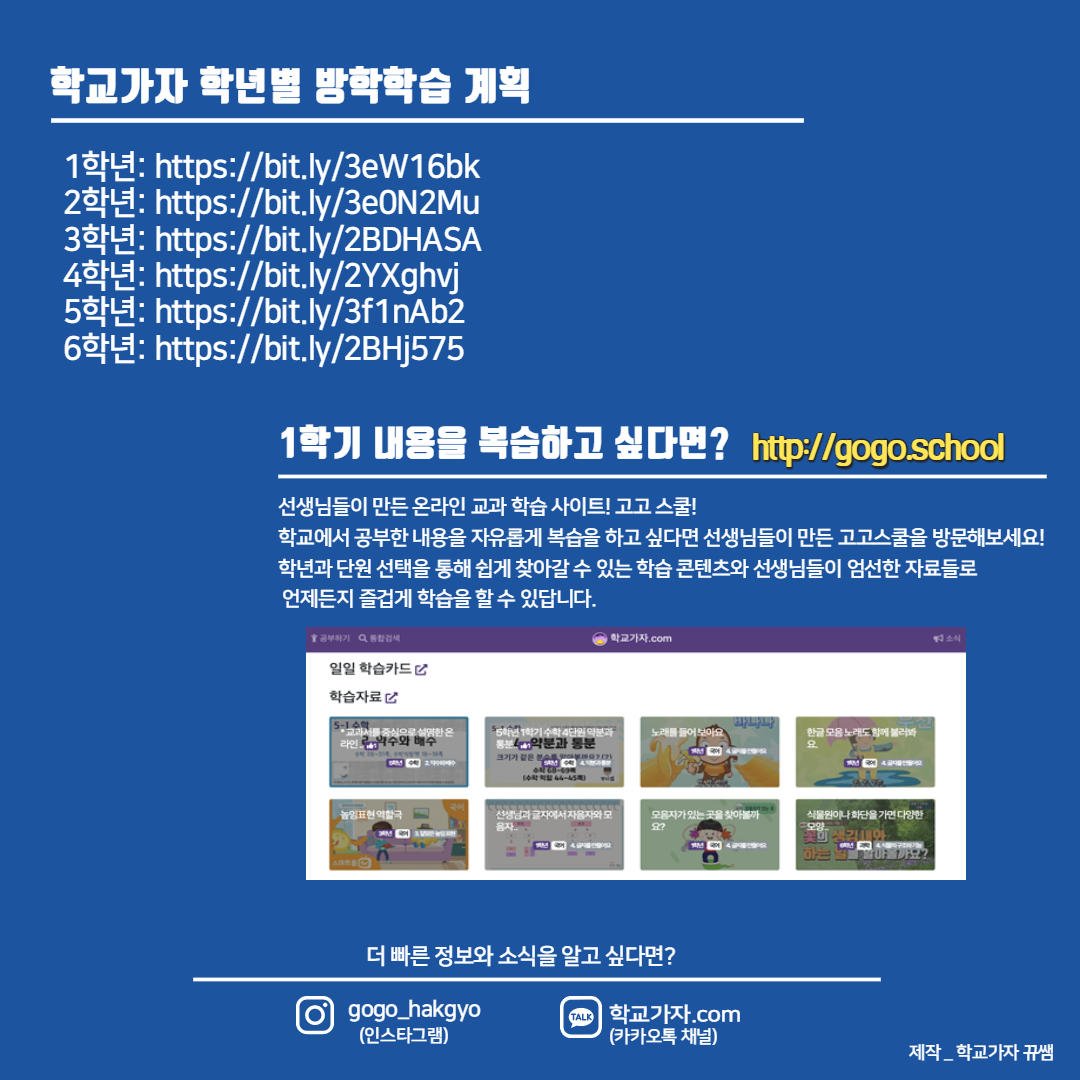 학교가자닷컴으로 접속과 동시에 방학 학습을 할 수 있도록 사이트를 개편중에 있습니다. 현재도 학교가자닷컴 사이트는 운영 중에 있습니다 ^^