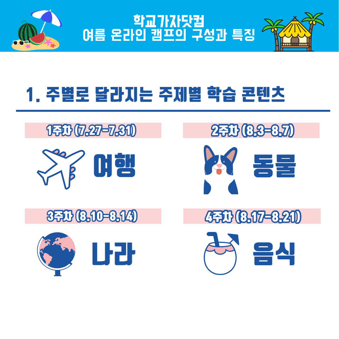 초등학생들을 위한 학교가자 온라인 여름캠프 안내 본문