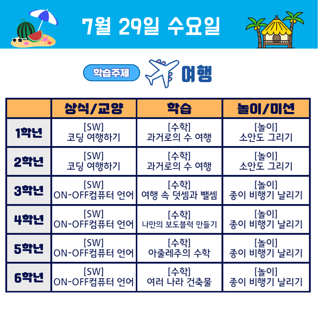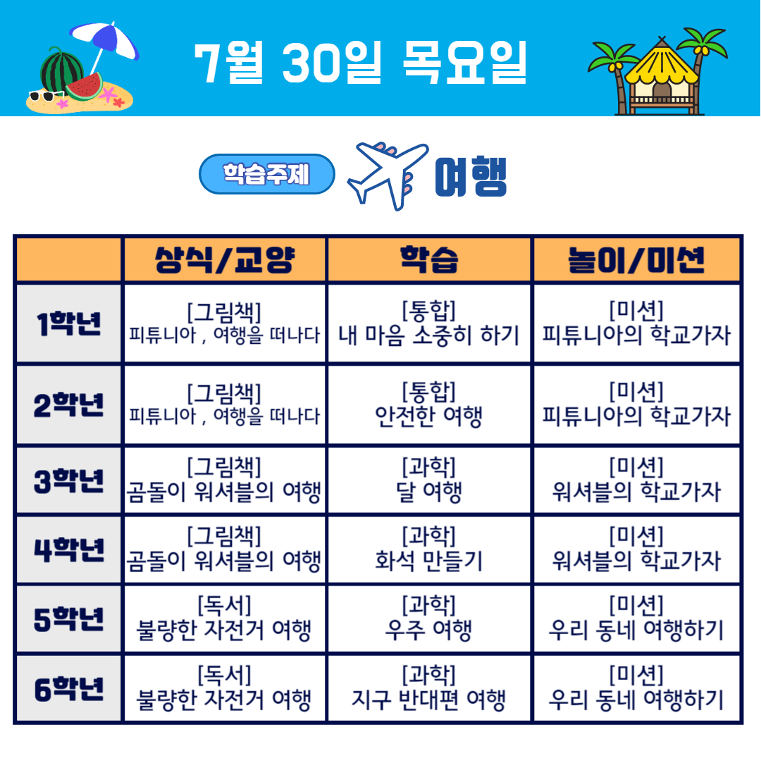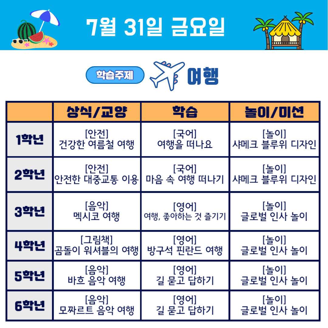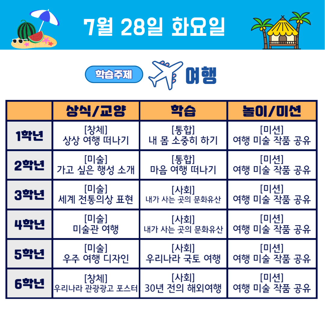 여름방학 1주차 (7.27~31) 학교가자 주제중심 프로젝트 - 여행 본문