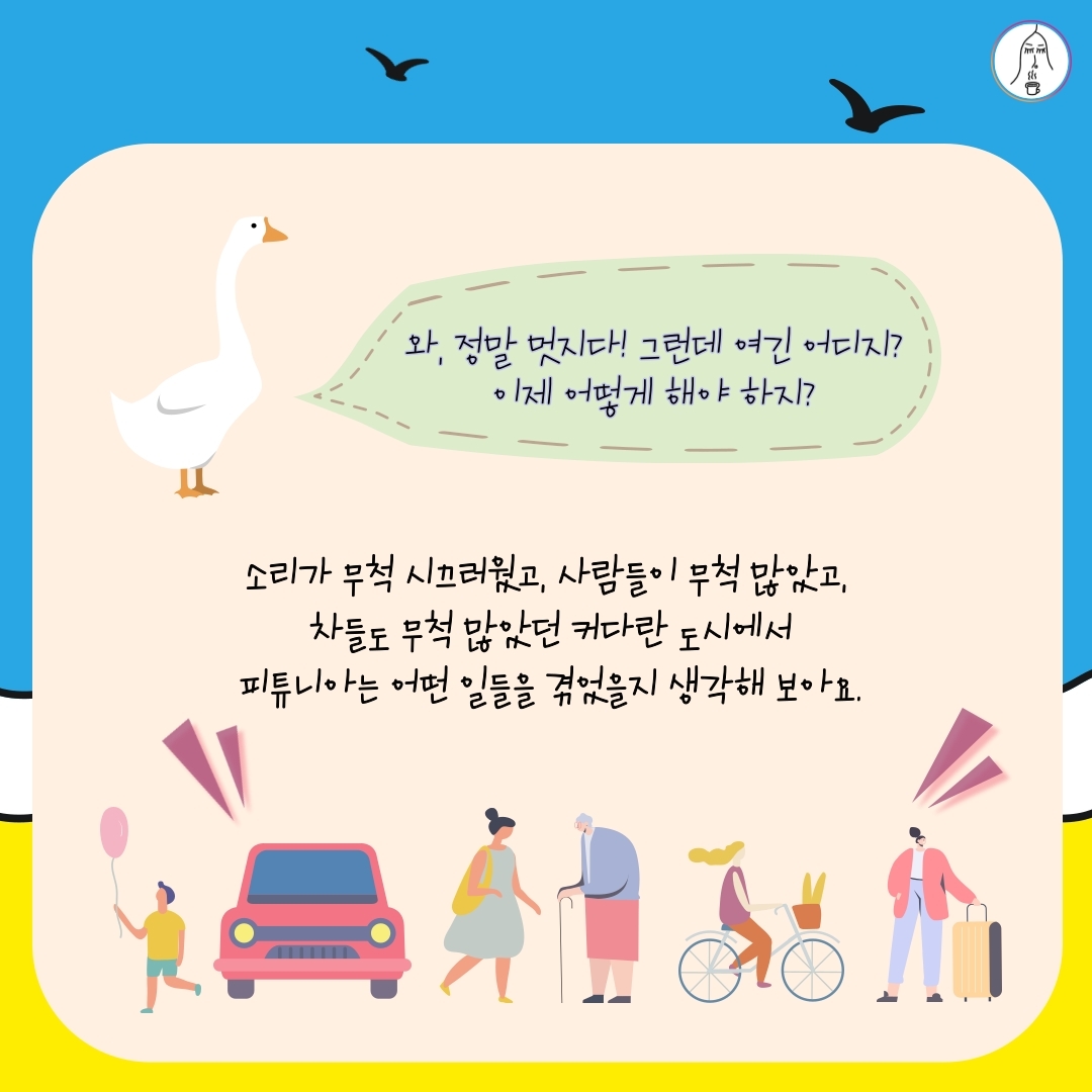 이번 주에 같이 나누게 된 책은 암거위 피튜니아가 주인공으로 등장하는 <피튜니아, 여행을 떠나다>입니다.