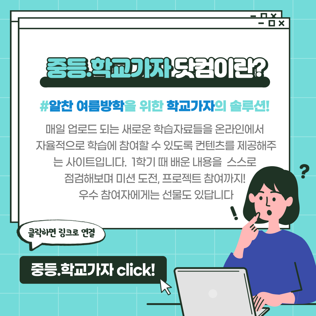 중학생들을 위한 학교가자 온라인 여름캠프 안내 본문
