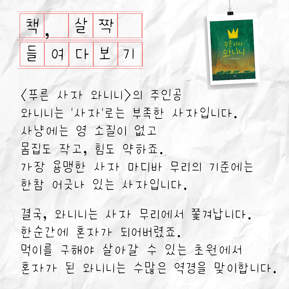 5-6학년군 2주차 '동물' 주제 독서 <푸른 사자 와니니> 본문