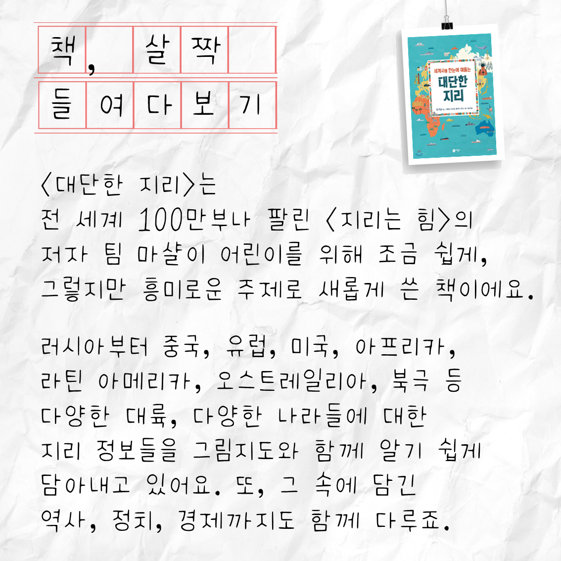 5-6학년군 3주차 '나라' 주제 독서 <대단한 지리> 본문