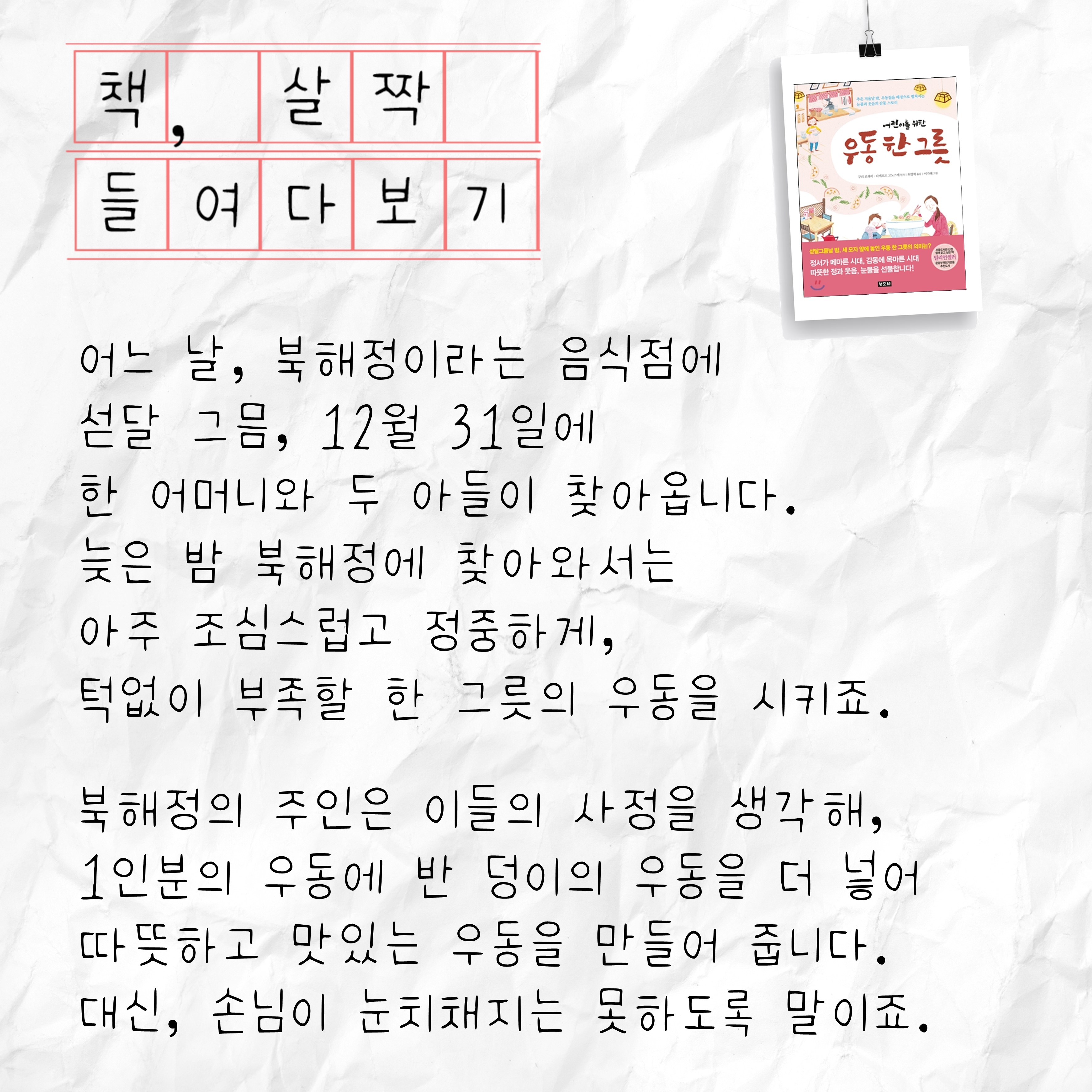 5-6학년군 4주차 '음식' 주제 독서 <우동 한 그릇> 본문