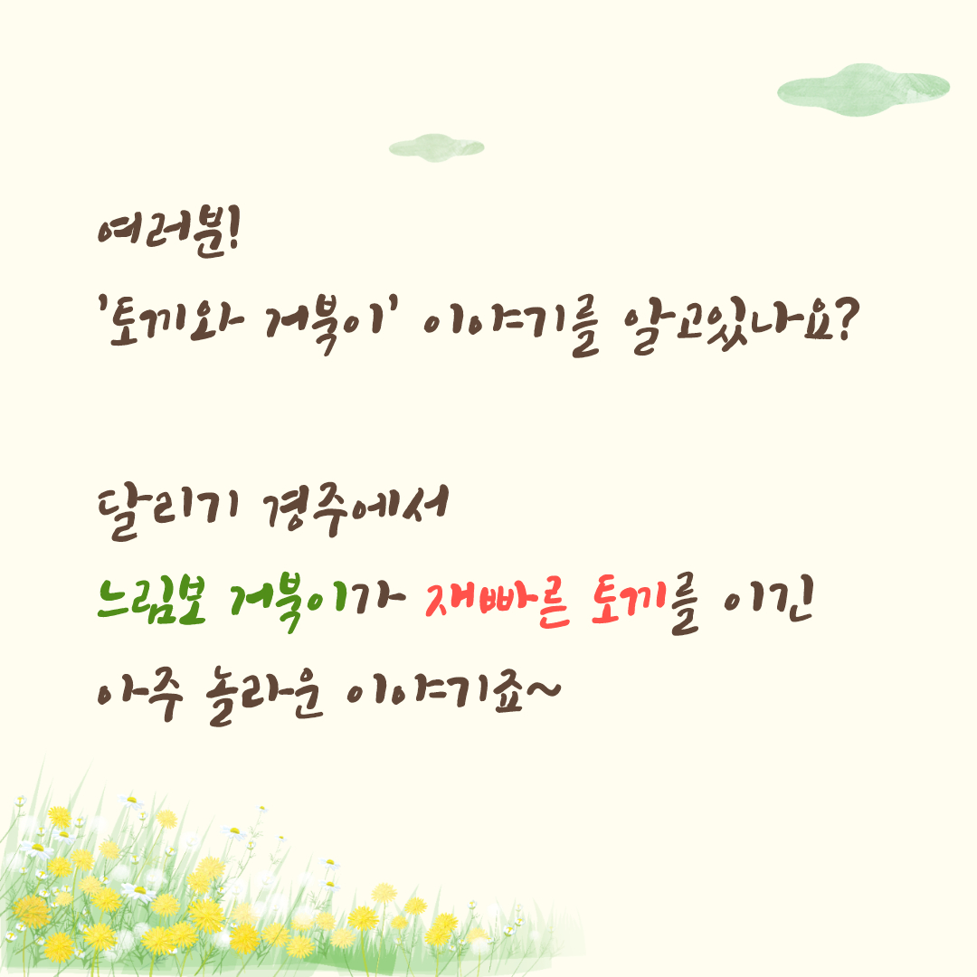 토끼와의 달리기 경주에서 이긴 거북이는 지금 어떻게 지내고 있을까요?