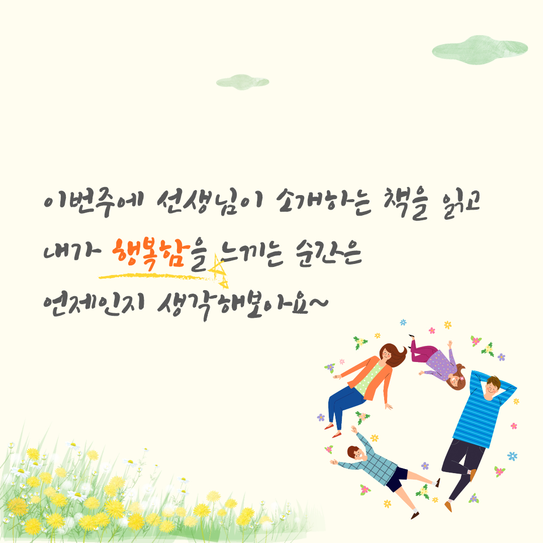 내가 행복함을 느끼는 순간은 언제인지 생각해보며, 아래 질문에 자유롭게 답해보아요!