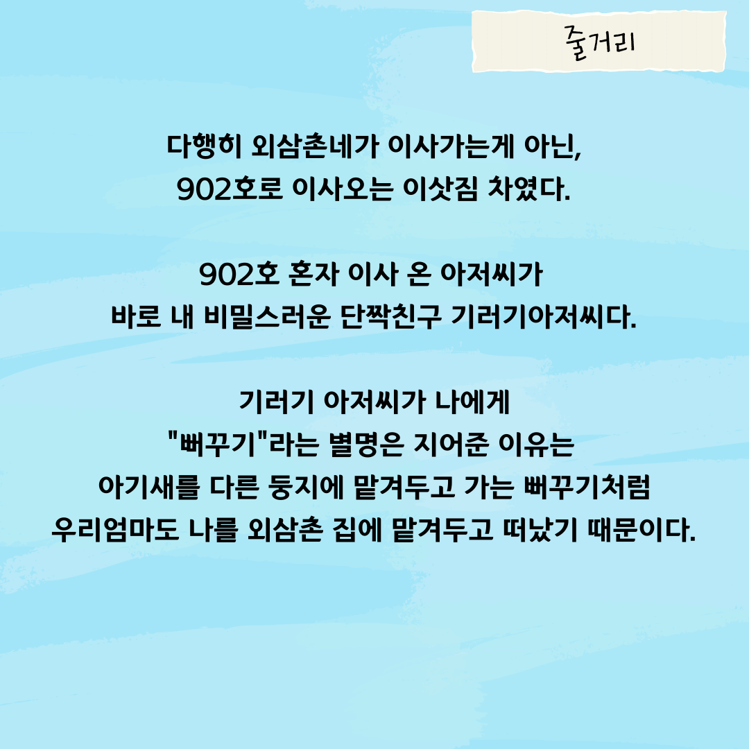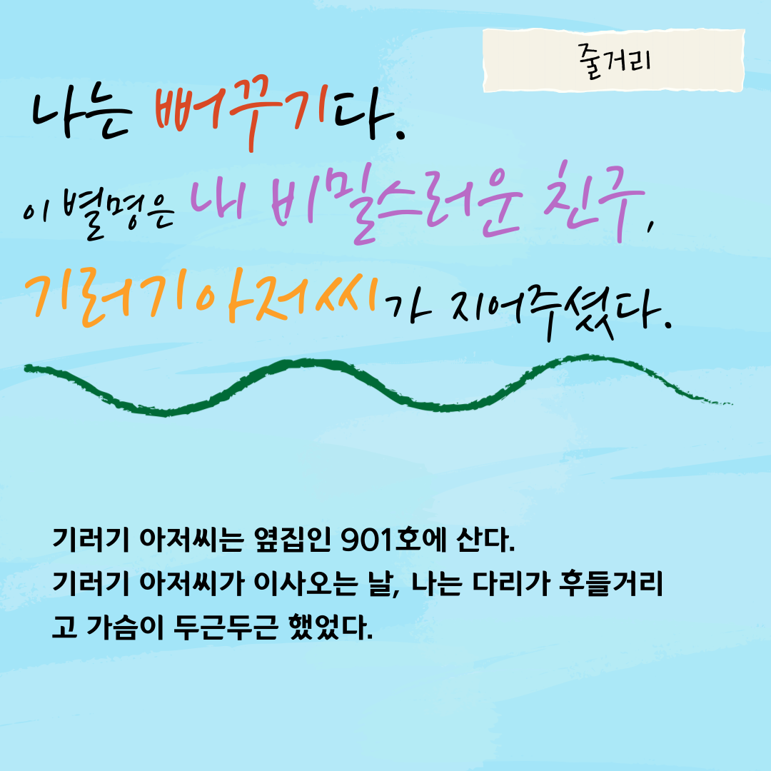 둘, 이번주 함께 읽은 책 「나는 뻐꾸기다」 어땠나요? 구글 설문지를 통해 몇 가지 질문에 대해 답해 볼까요? 그리고 동재는 '뻐꾸기', 아저씨는 '기러기'라는 별명이 붙은 것 처럼, 나에게 나의 특징과 상황에 어울리는 별명을 붙여줍시다.