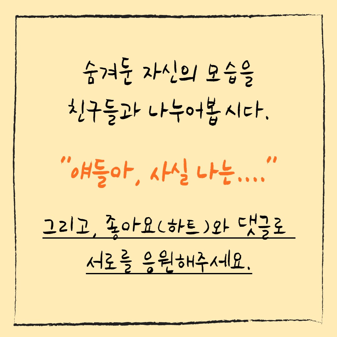 ♥ 솔직한 나의 모습을 적고, 친구들에게도 하트와 응원댓글을 달아주세요 ♥