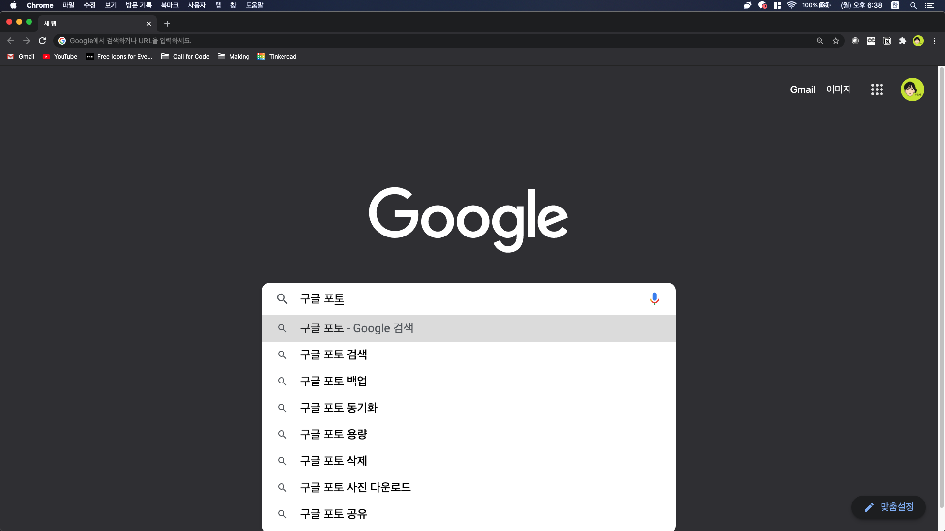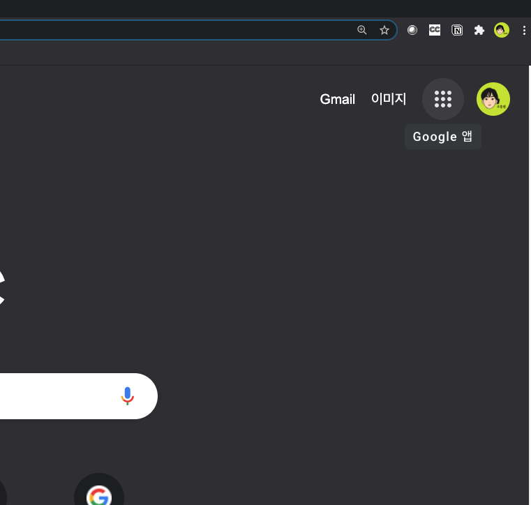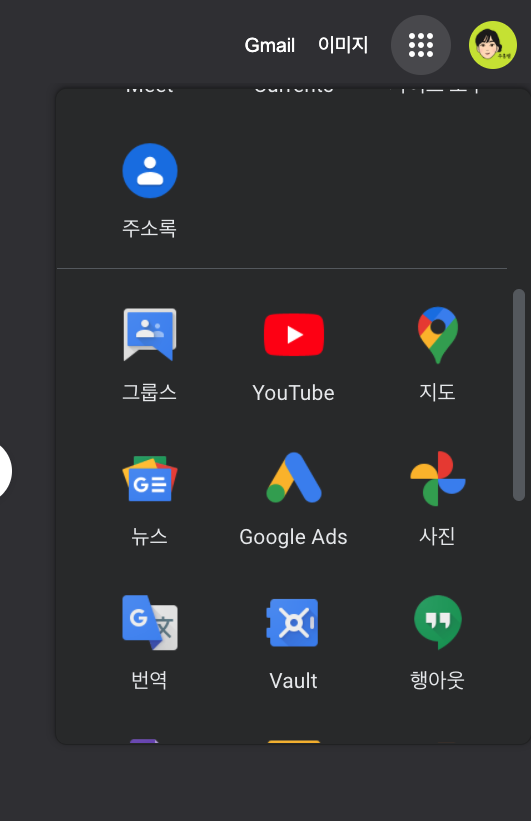 크롬을 사용하고 있다면, 오른쪽 상단에 '이미지'와 프로필 사진 사이의 점 9개 버튼을 클릭합니다. 하단으로 이동하여 사진을 클릭합니다.