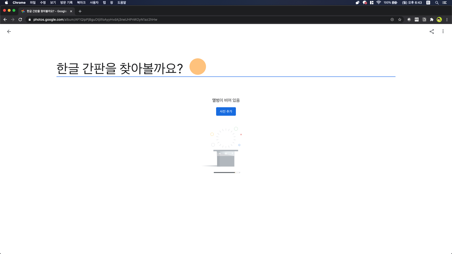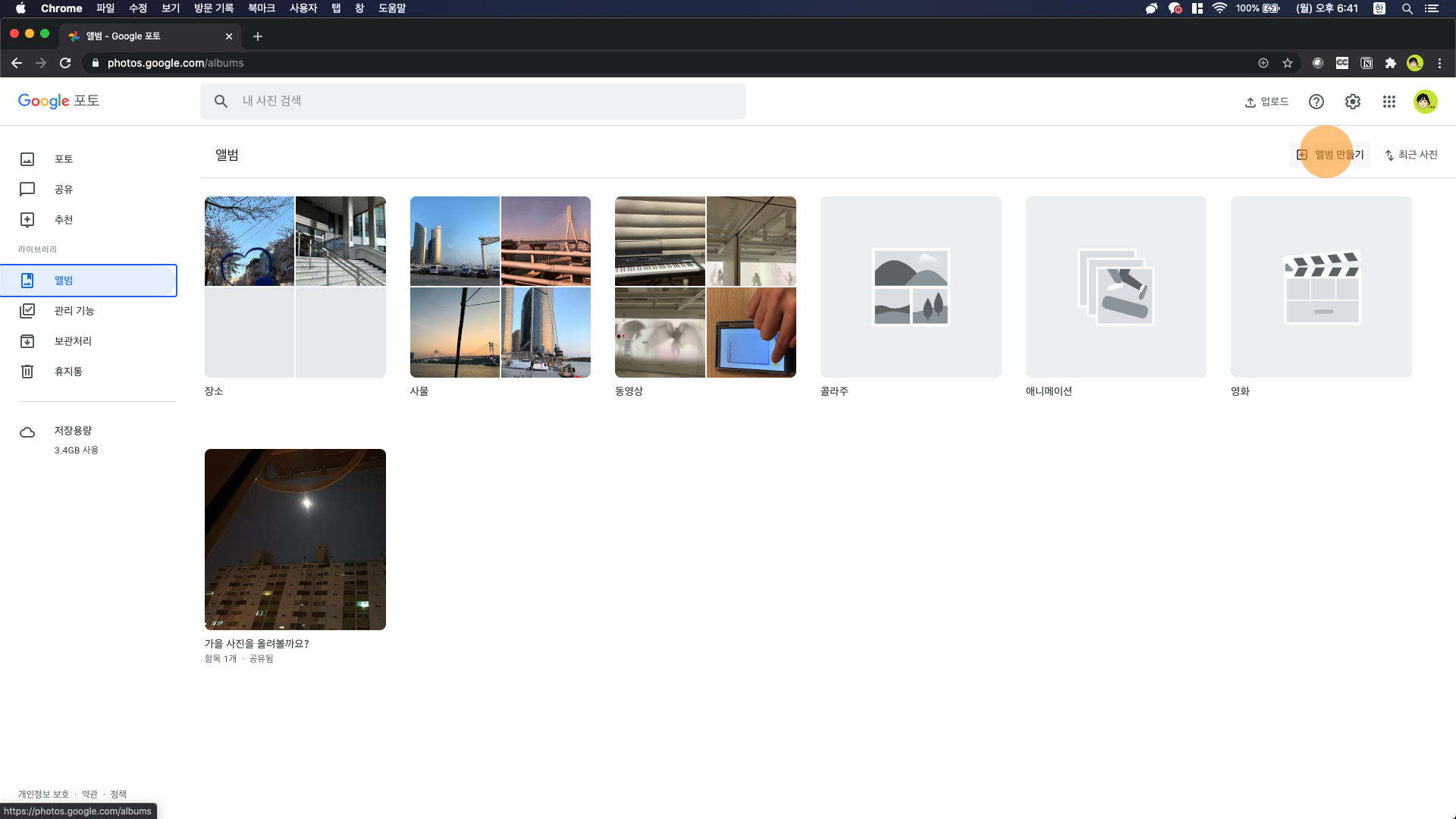 오른쪽 위에 있는 앨범 만들기 버튼을 누릅니다.
