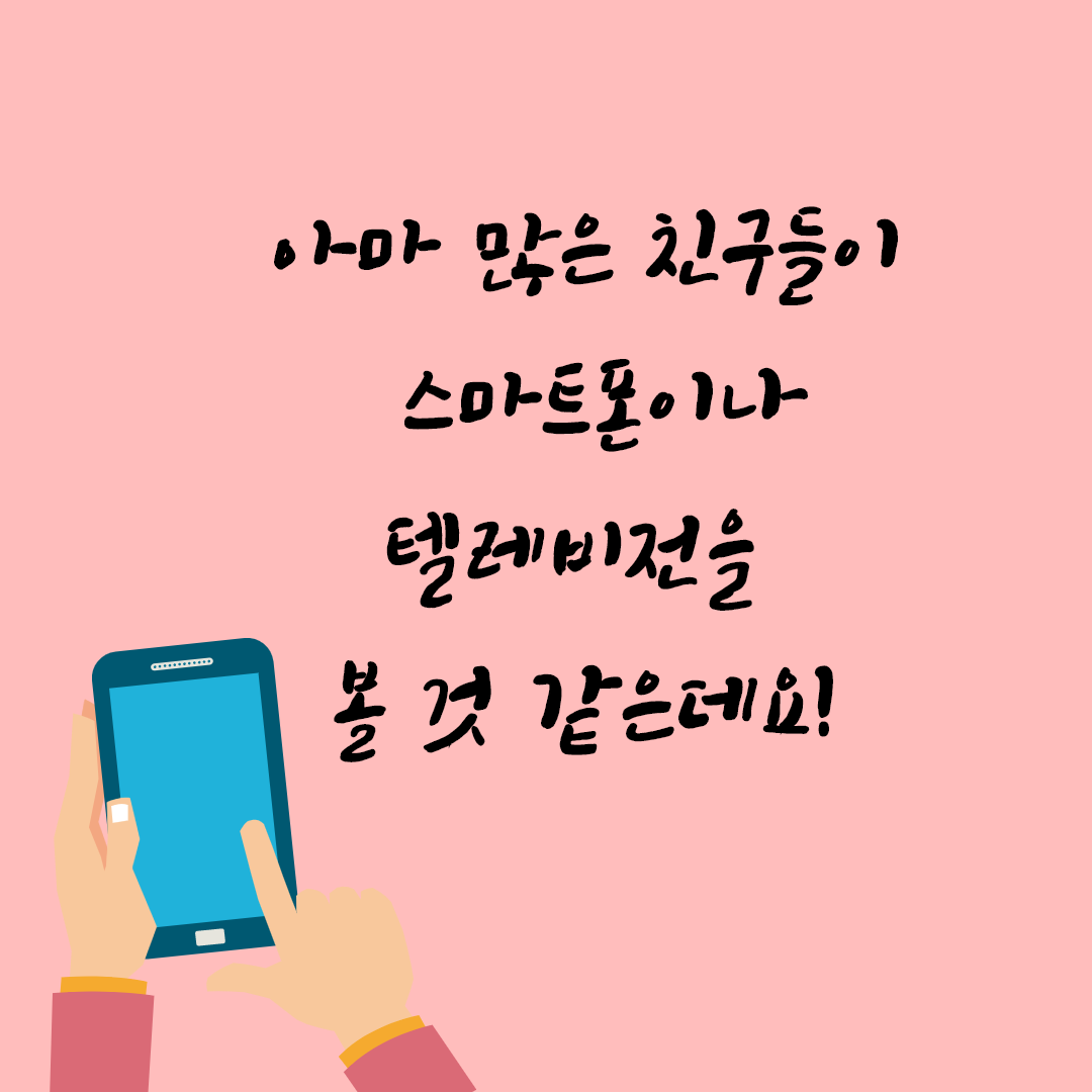 아마 많은 친구들이 스마트폰이나 텔레비전을 볼 것 같아요.
