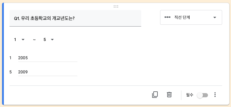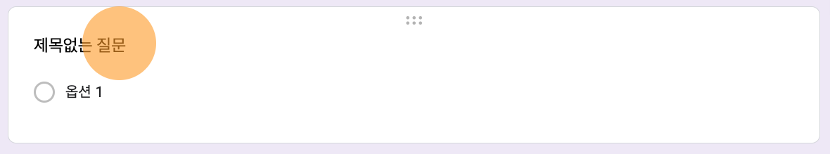 제목 블록과 1개의 질문 블록이 있는 것을 확인할 수 있습니다. 이처럼 설문지는 여러 개의 블록으로 이루어져 있습니다.