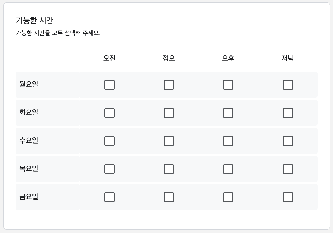 - 활용 방법: 모임 시각을 조사할 때/일정을 짤 때 등