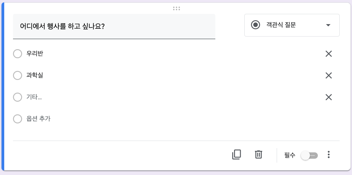 이 문항 형태만 잘 선택하면 구글 설문지로 보다 많은 것들을 할 수 있습니다.
