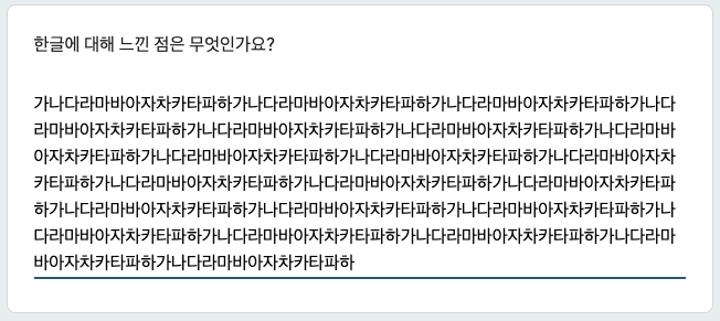 **단답형이지만 사실은 응답을 엄청 길게 적을 수 있습니다. 단, 학생이 보기에 그 중 일부만 보이게 되어 응답의 길이가 길어질 경우 자신이 적은 응답을 확인하기 불편합니다.