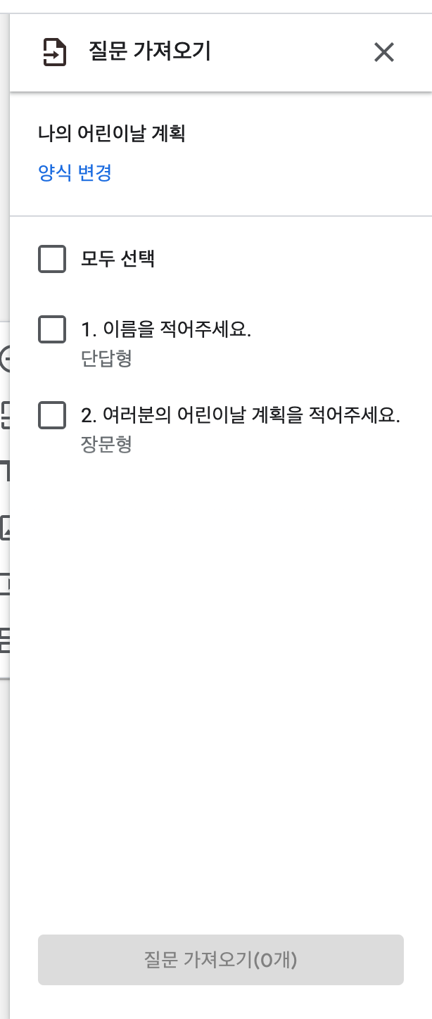 다른 구글 설문지에 있는 질문을 가져오는 기능입니다.