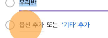 2) 옵션 추가 및 입력: 옵션 추가 글씨를 누르고 내용을 입력합니다. 또는 이전 옵션 입력 후 키보드의 엔터 키를 눌러도 옵션을 추가할 수 있습니다.