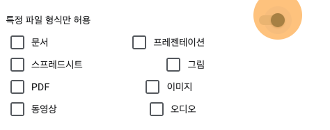 2) 특정 파일 형식만 허용: 이 기능을 켜면, 원하는 형식의 파일만 올릴 수 있도록 합니다. 이때의 파일 형식은 복수 선택 가능합니다.