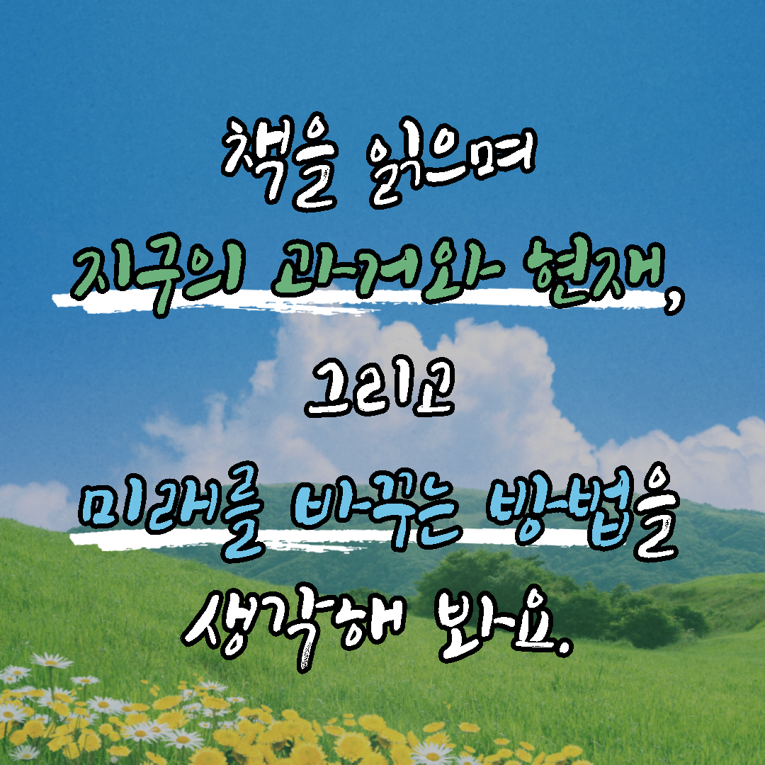 둘, 이번 주 함께 읽은 책 「지구가 뿔났다」 어땠나요? 「지구가 뿔났다」 책 내용을 떠올리며 아래 영상을 보고 어떤 생각이나 느낌이 드나요? 구글 설문지를 통해 몇 가지 질문에 답해 봅시다.