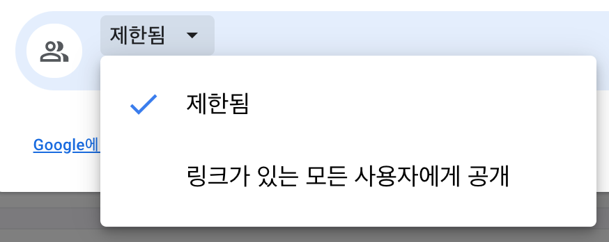 - 제한됨: 이메일로 직접 추가한 사용자만이 이 링크로 들어와 편집할 수 있습니다.