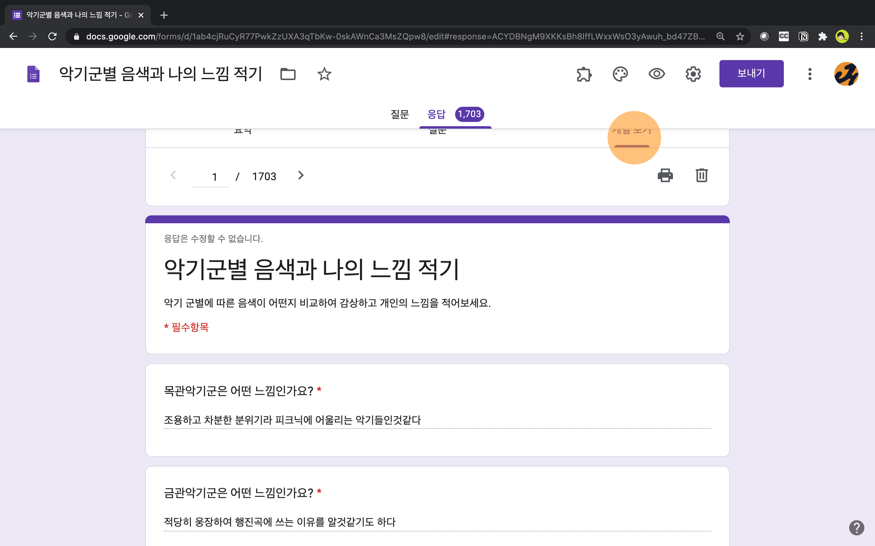 제출된 응답을 보는 방법을 알아보겠습니다.
