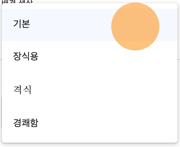 - 배경 색상: 선택한 테마 색상에 따라 추천된 배경 색상이 나타납니다. 테마 색상보다 연한 색 3가지와 회색 중에 선택할 수 있습니다.
