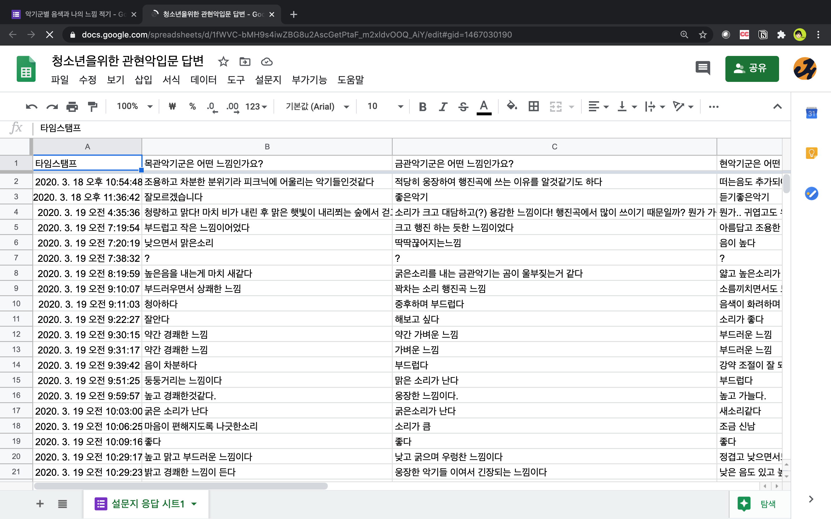 - 응답 결과가 자동으로 구글 시트(엑셀 형식)로 정리 및 저장된다는 점