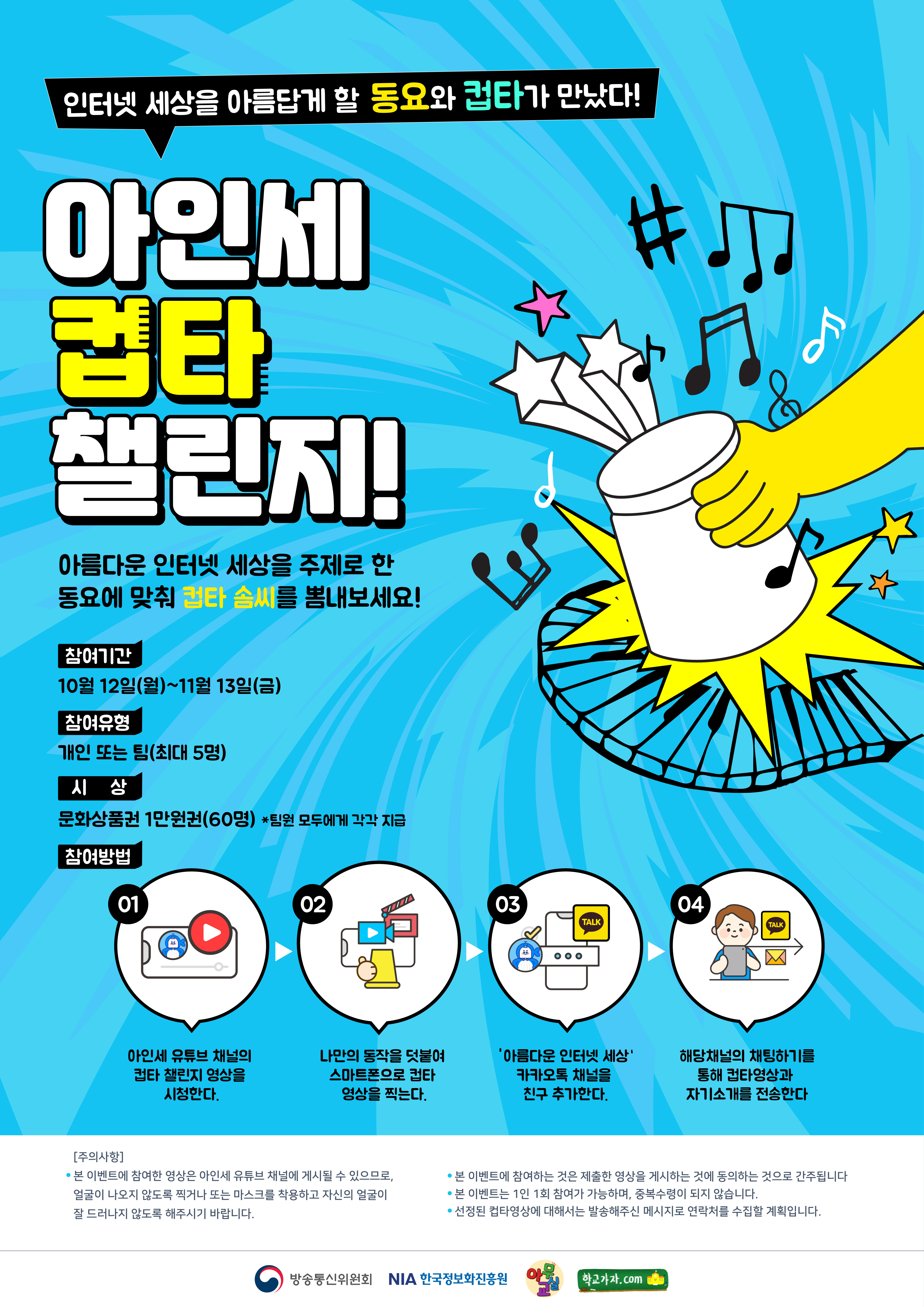 한국정보화진흥원 X 아무교실 X 학교가자 디지털 리터러시 컵타 챌린지 이벤트 안내 본문