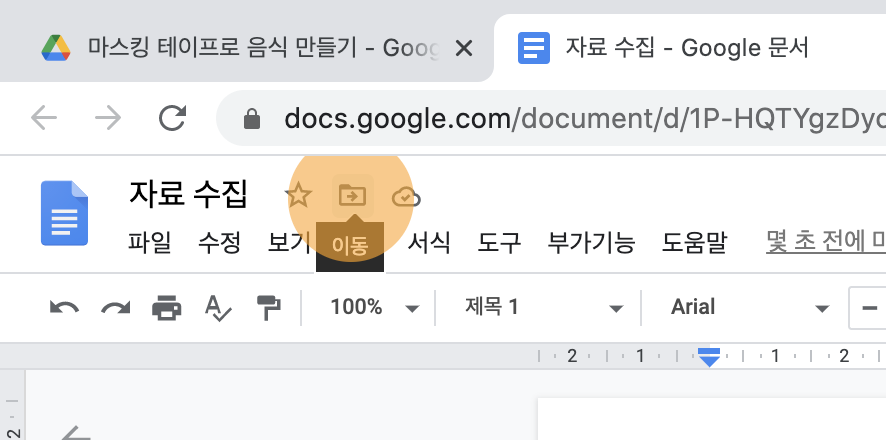 **다른 사람에게서 공유받은 폴더의 경우, 위치가 내 드라이브 홈 화면으로 고정되어 이동할 수 없을 때도 있습니다.