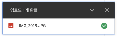 오른쪽 하단의 '업로드 중'이 '업로드 완료'로 뜨면 드라이브에 파일이 잘 저장된 것입니다.
