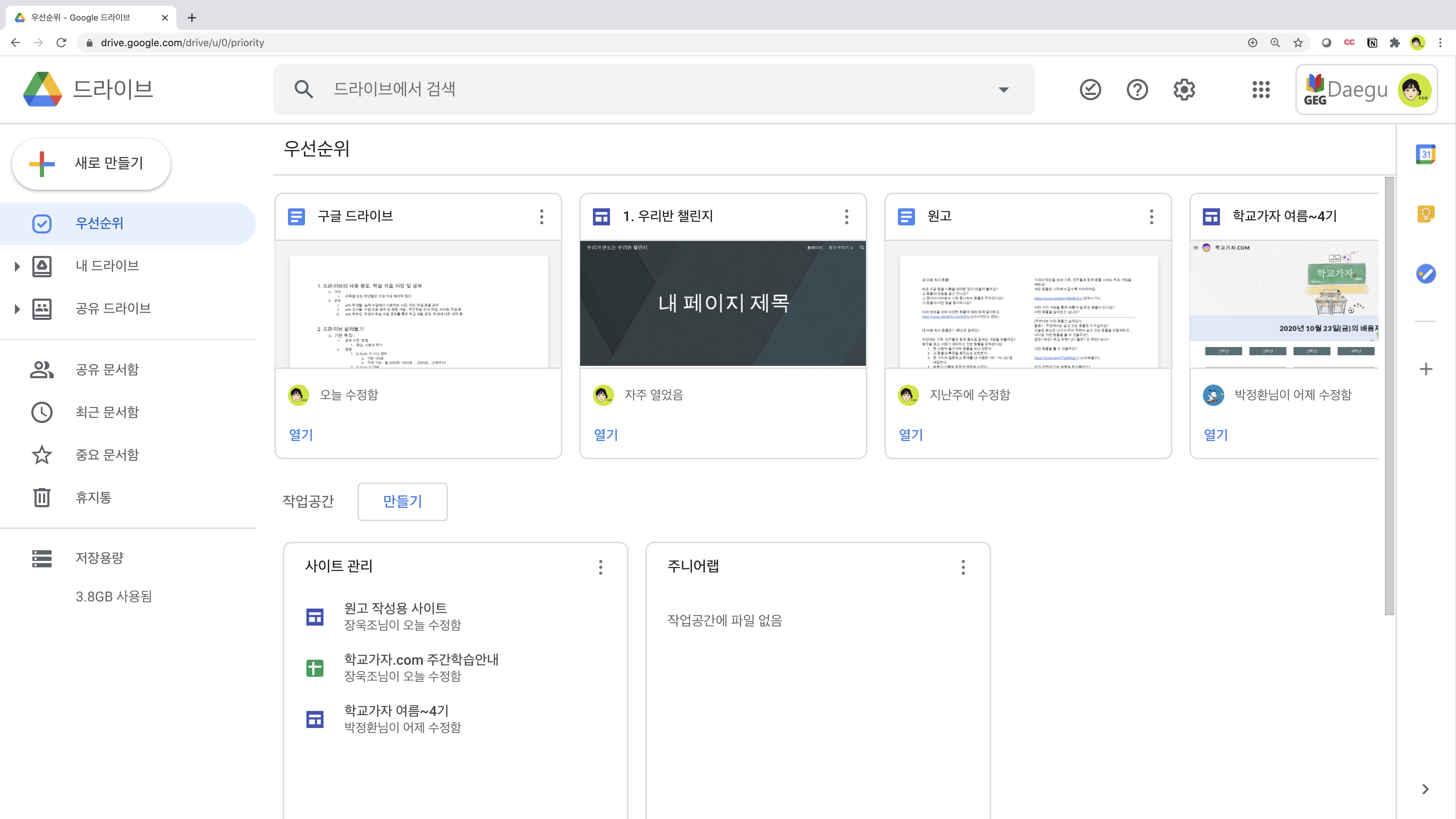 - 실제 수업에서 사용하는 사진, 워드 파일 등을 학생들과 공유할 때