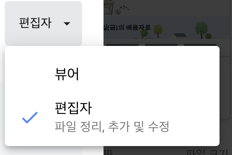 2) 옆의 편집자 버튼을 눌러 부여하고자 하는 권한을 선택합니다.