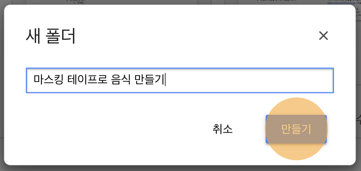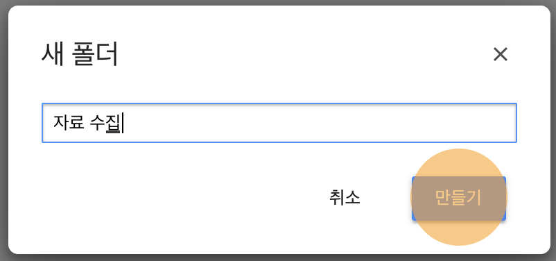 새 폴더를 만드는 창이 나옵니다. 원하는 대로 이름을 입력한 뒤, 아래쪽의 만들기 버튼을 누릅니다.
